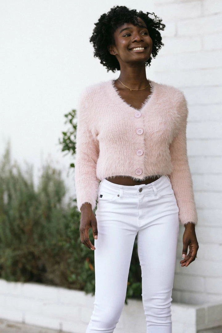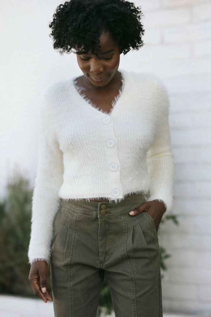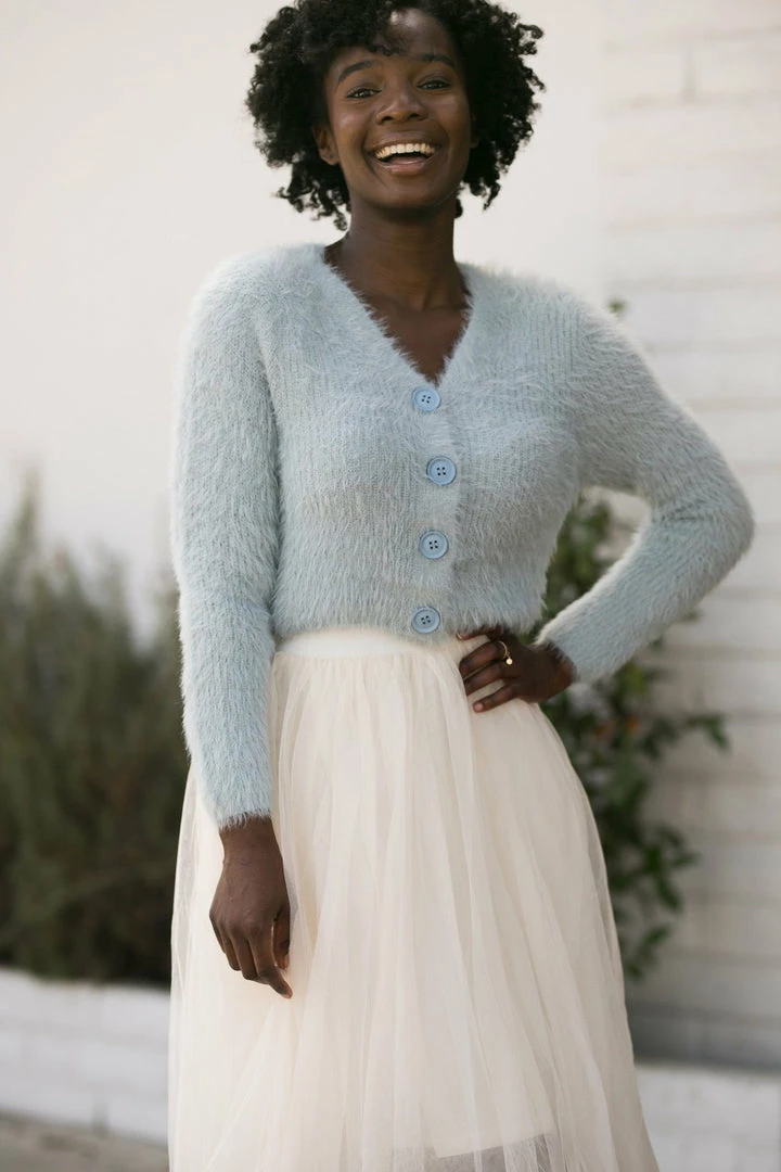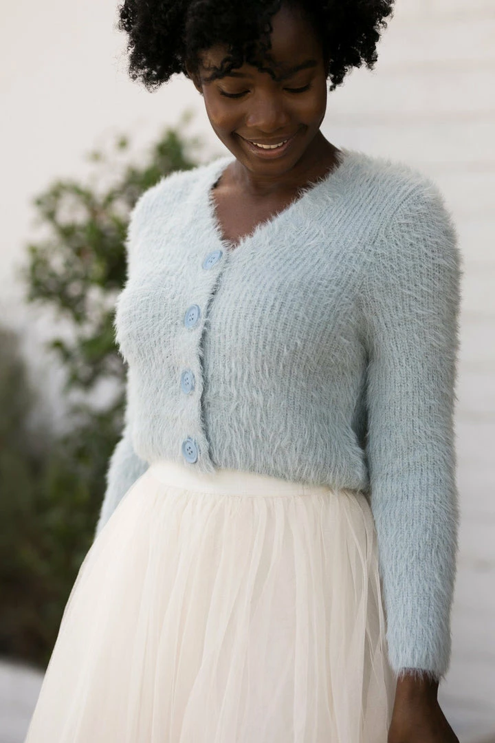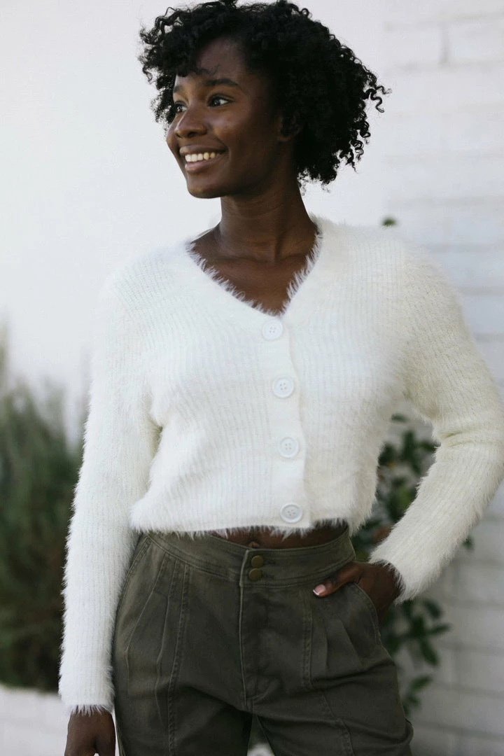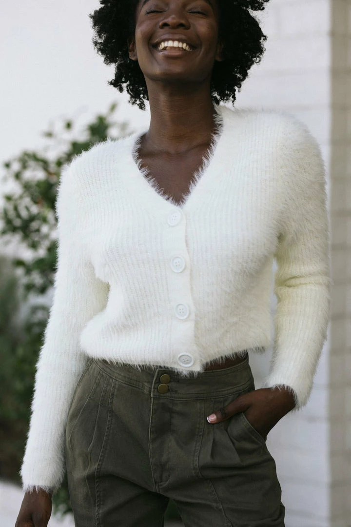 - Style made in a fuzzy knit fabric