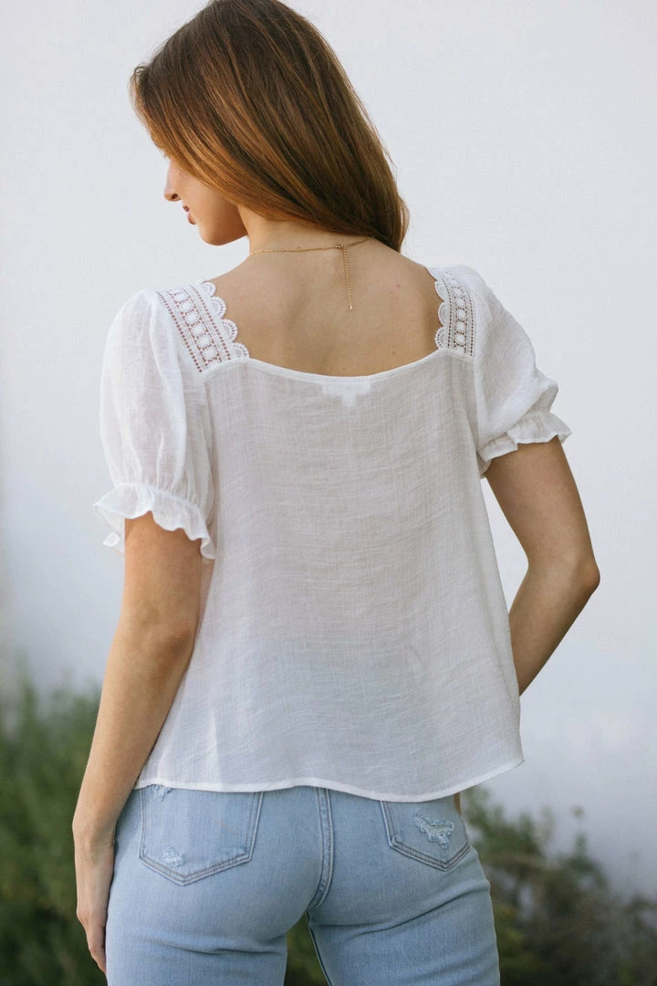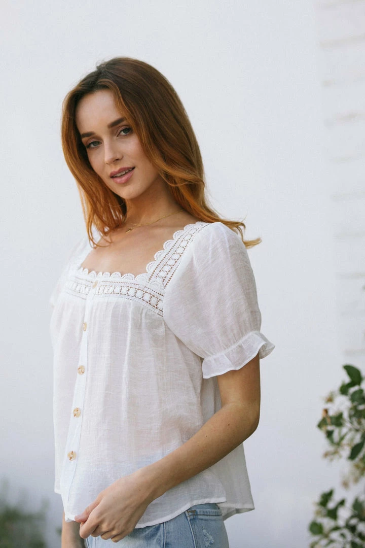 - Square neckline with crocheted lace trim