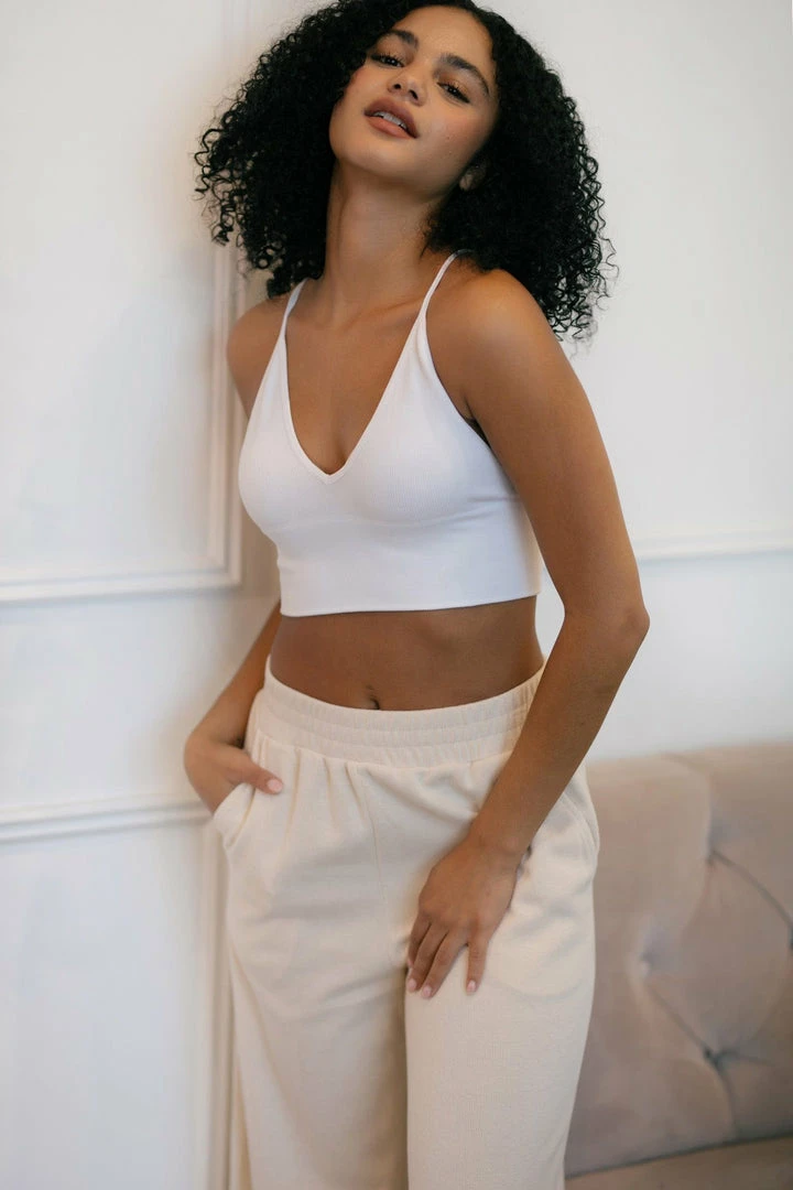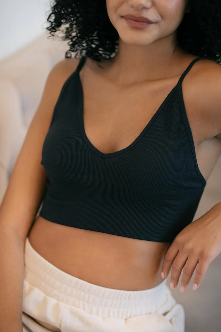 We love the Jenna Ribbed Triangle Cami Bra for its easy and comfy fit. With a wide band that is fitted for support and stretchy for comfort. This piece comes in two essential colors that are great for wearing under all your favorite t-shirts.