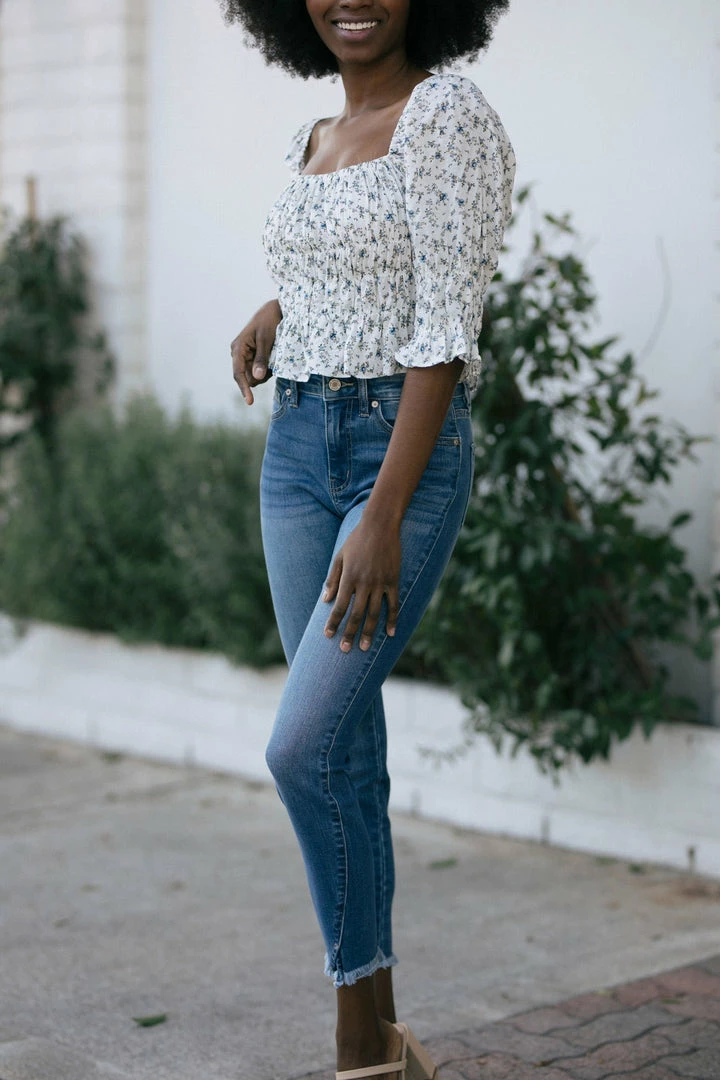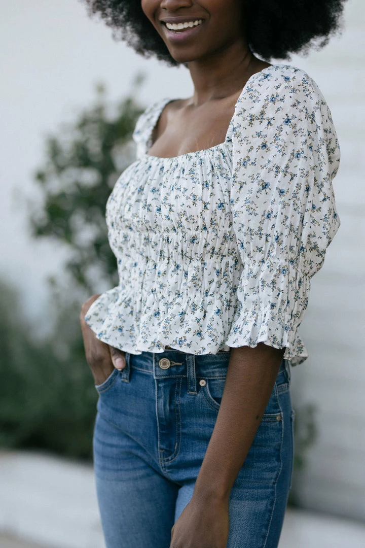 - Elastic shirred bodice