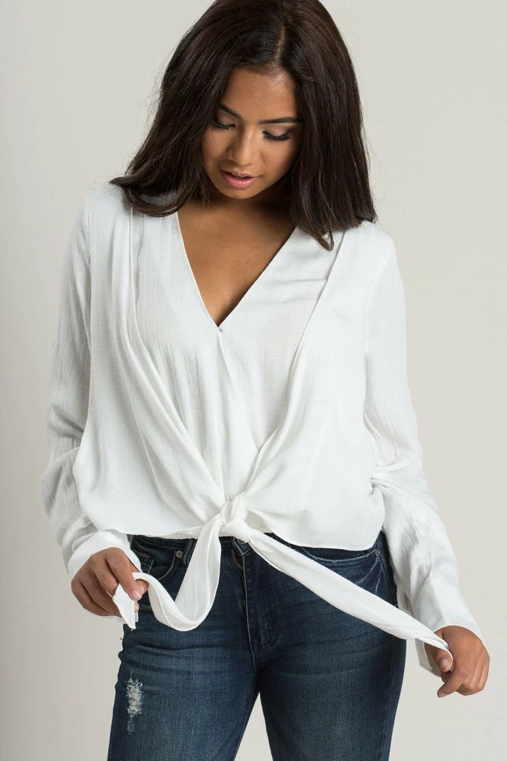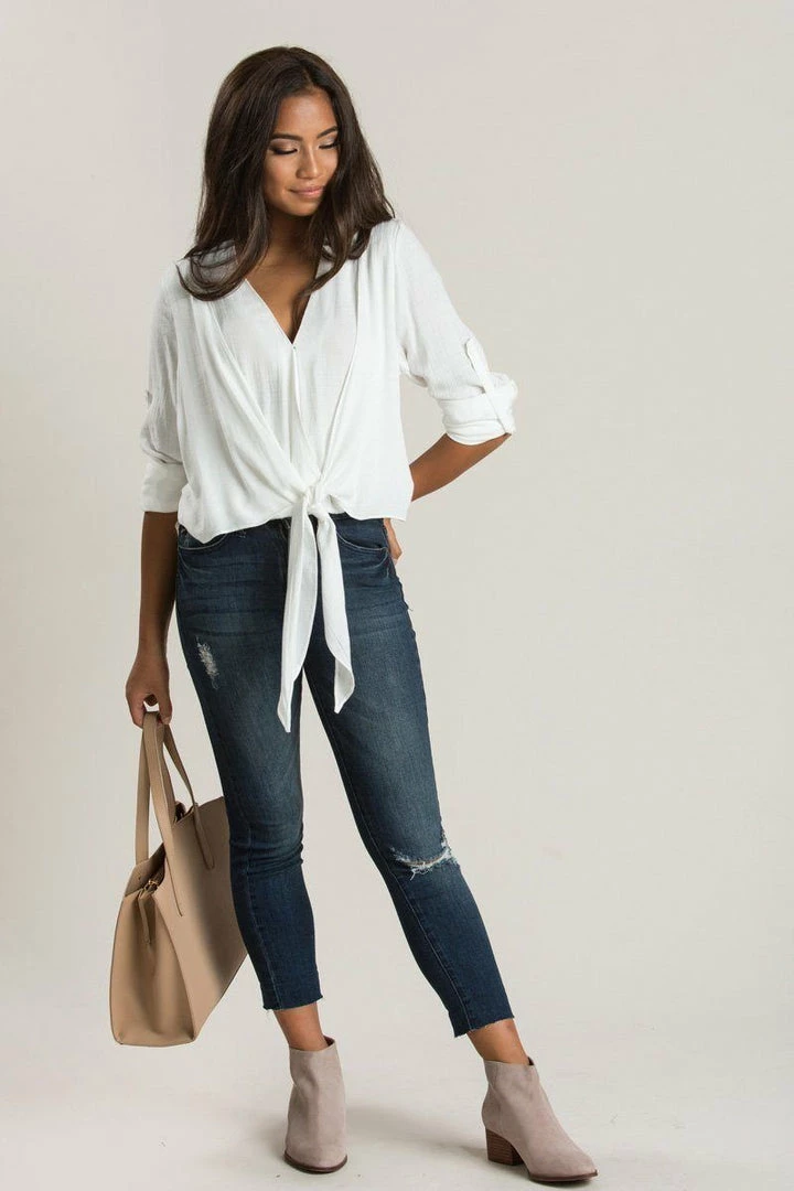 This gorgeous tie detail top is an elevated basic you absolutely NEED in your everyday wardrobe! We love the lightweight flowy material, and the clean and flattering silhouette of this piece. Pair it with your favorite denim for an easy ensemble perfect for a day at the mall or a weekend running errands!