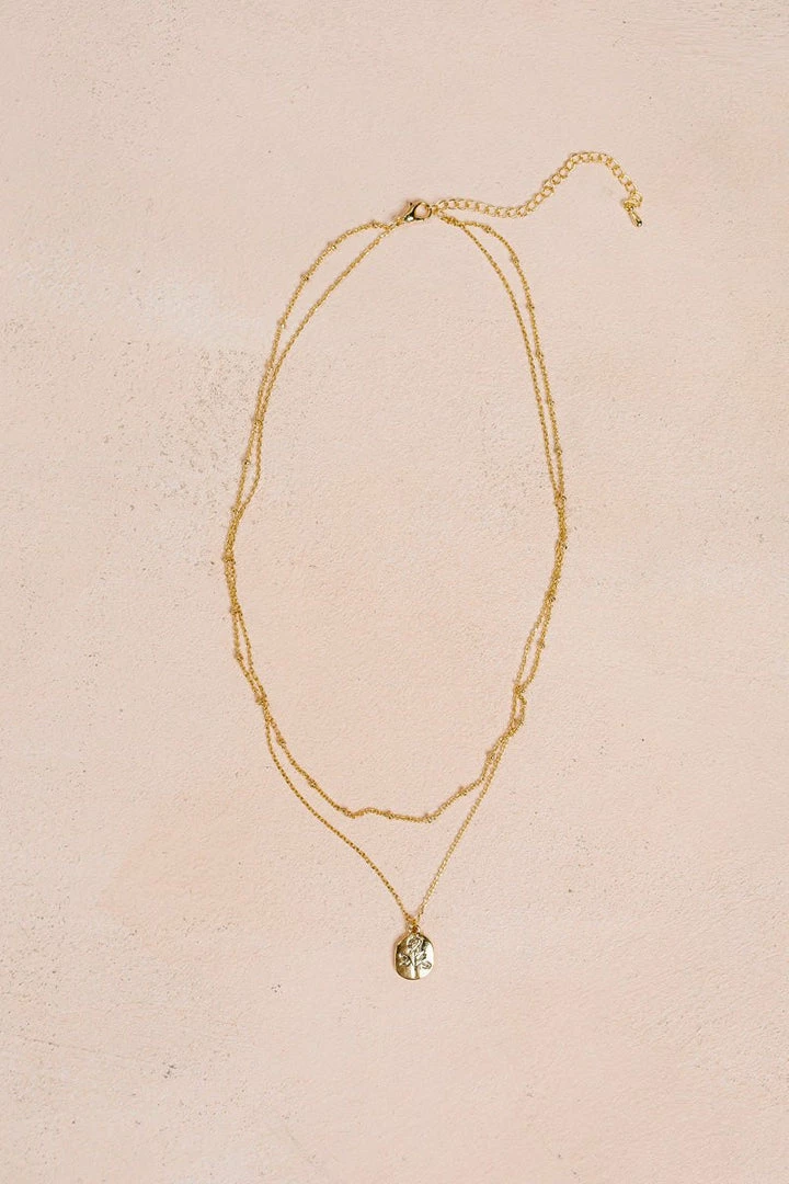 This gold layered necklace makes it so easy to complete any ensemble! We love the chain details and chic pendants. Brass