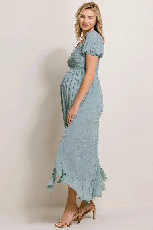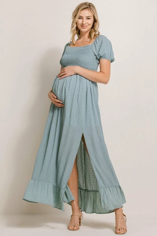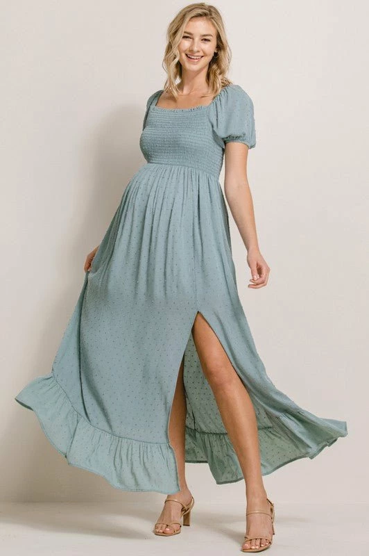 - Smocked bodice for comfortably fitted silhouette