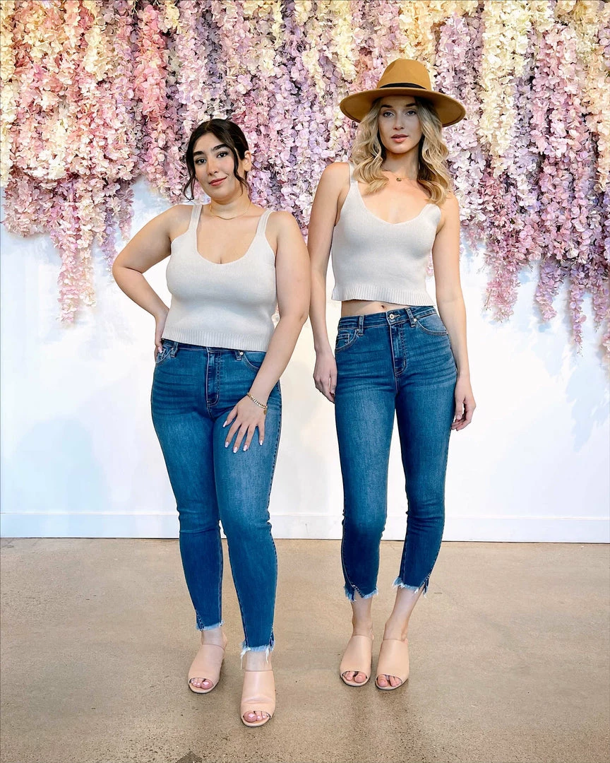 - Ribbed bottom hem detail