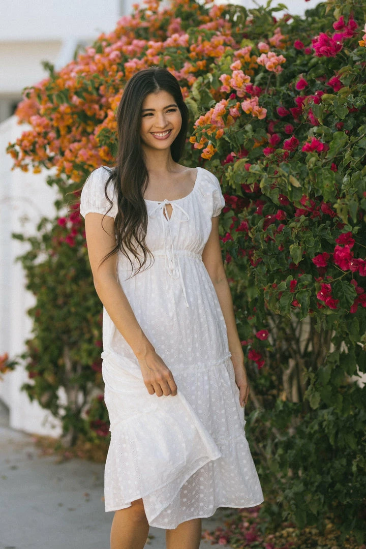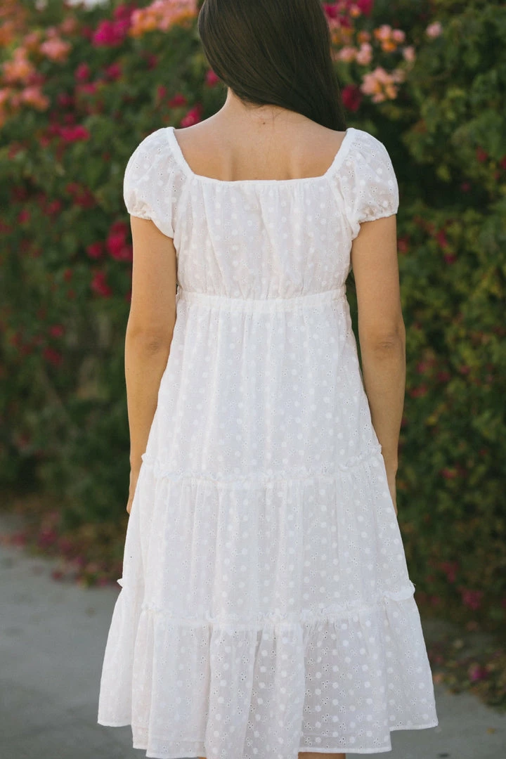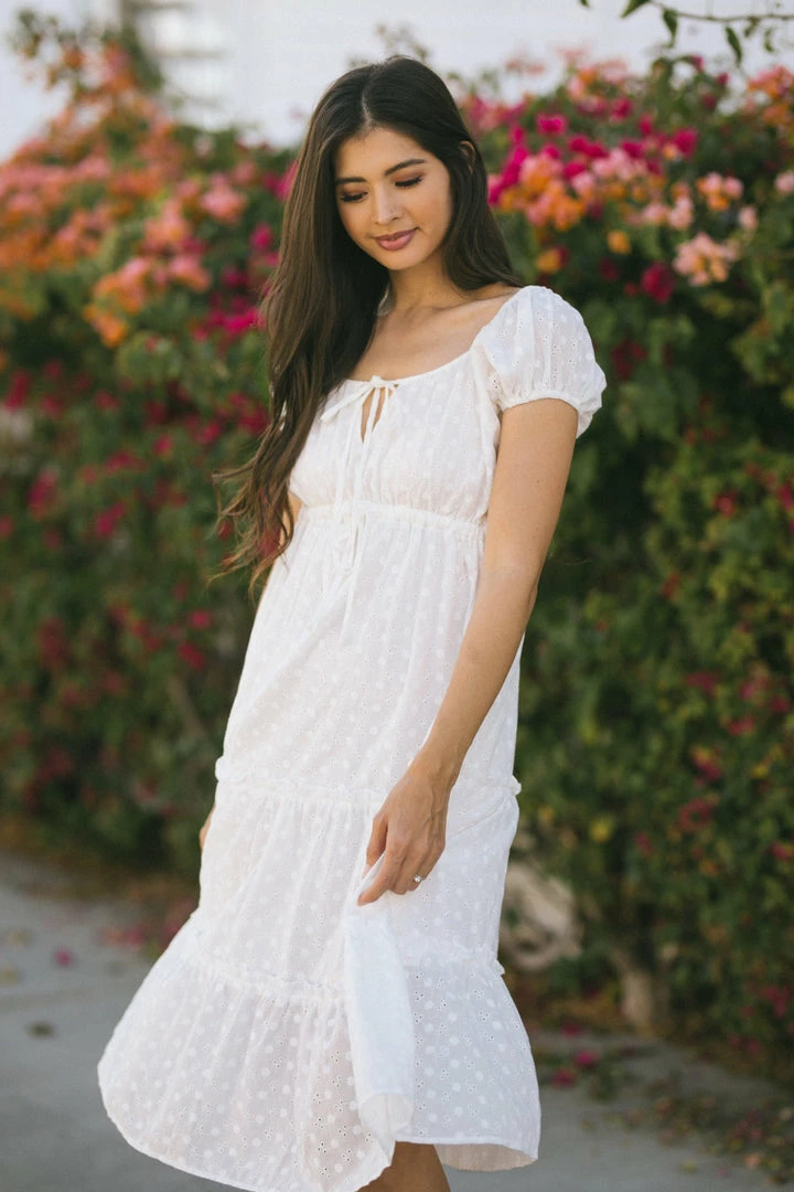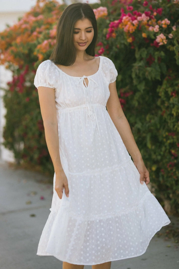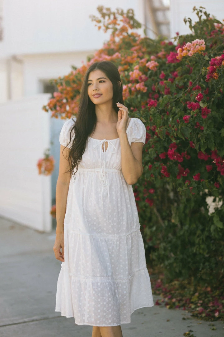 - Style features puffy cap sleeves that can be worn on or off shoulder