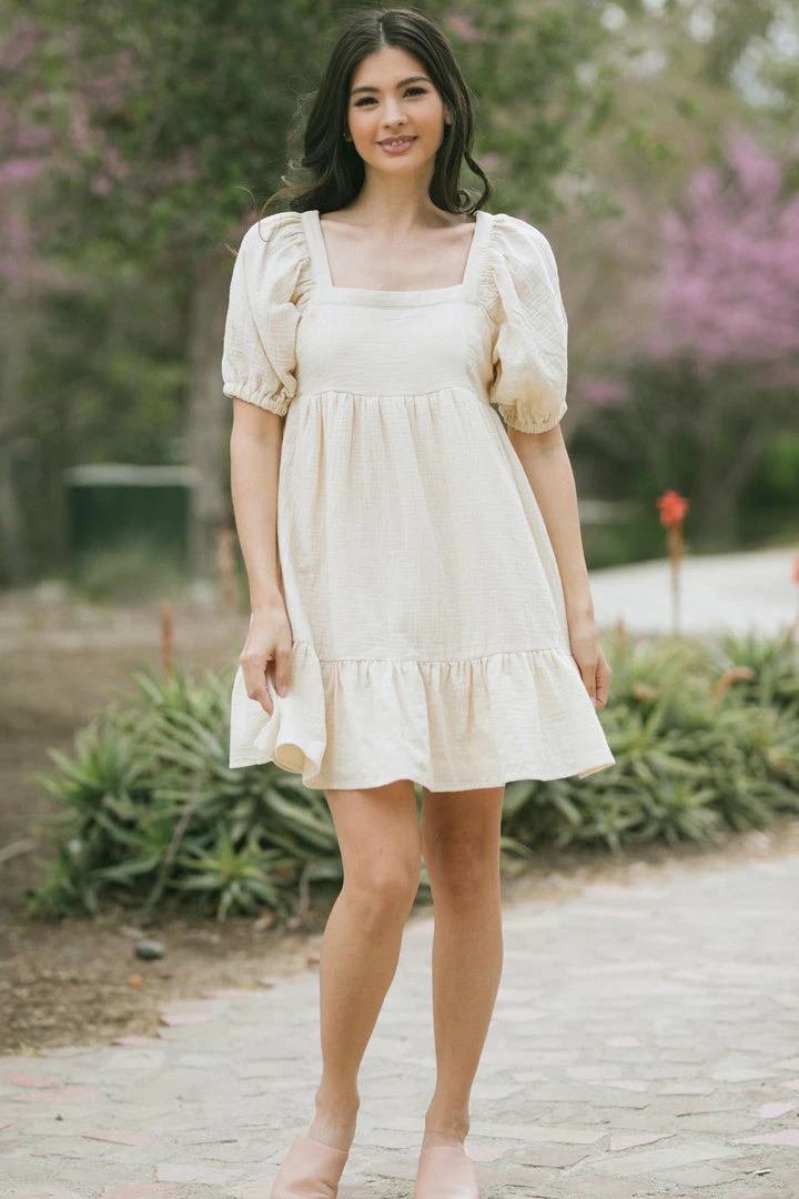 - Nicole is 5’6″ and is wearing size Small (Natural Cream)