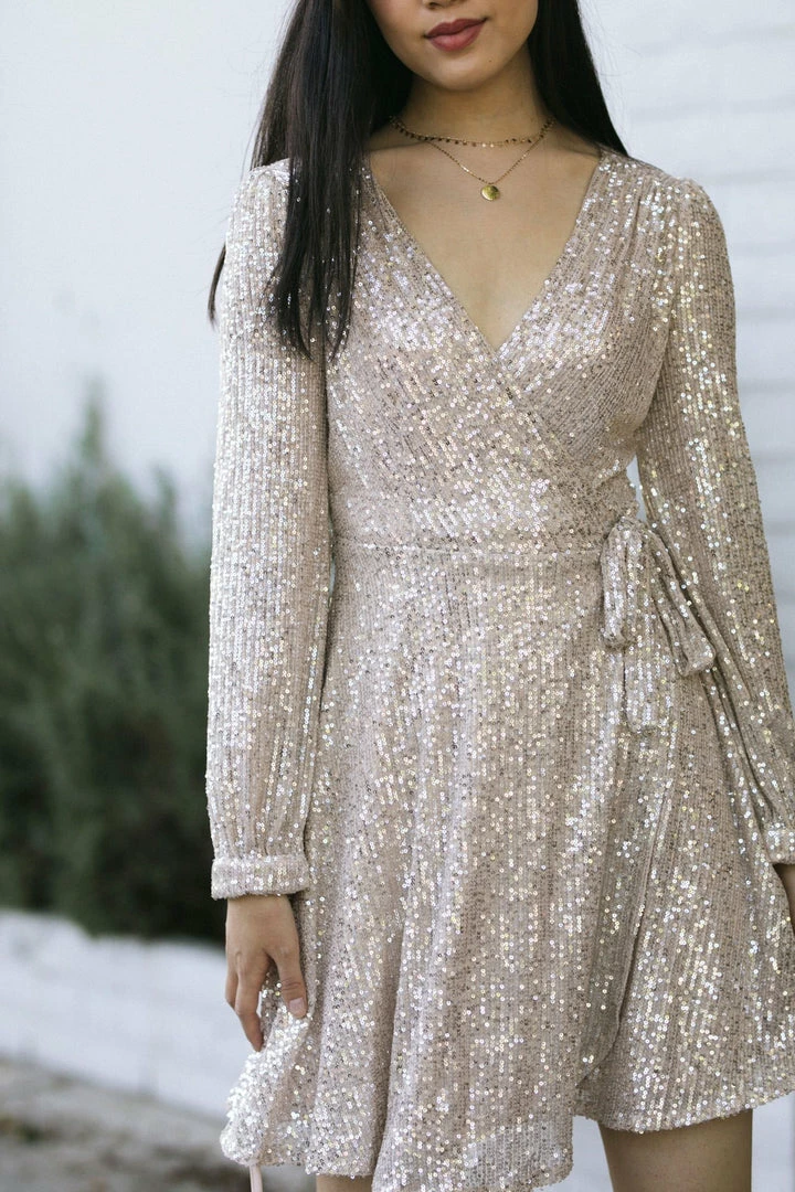 - Chloe is 5’9″ and is wearing size Small (Champagne)