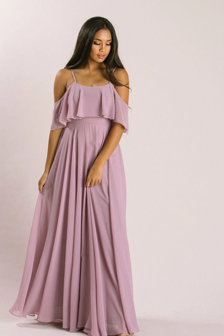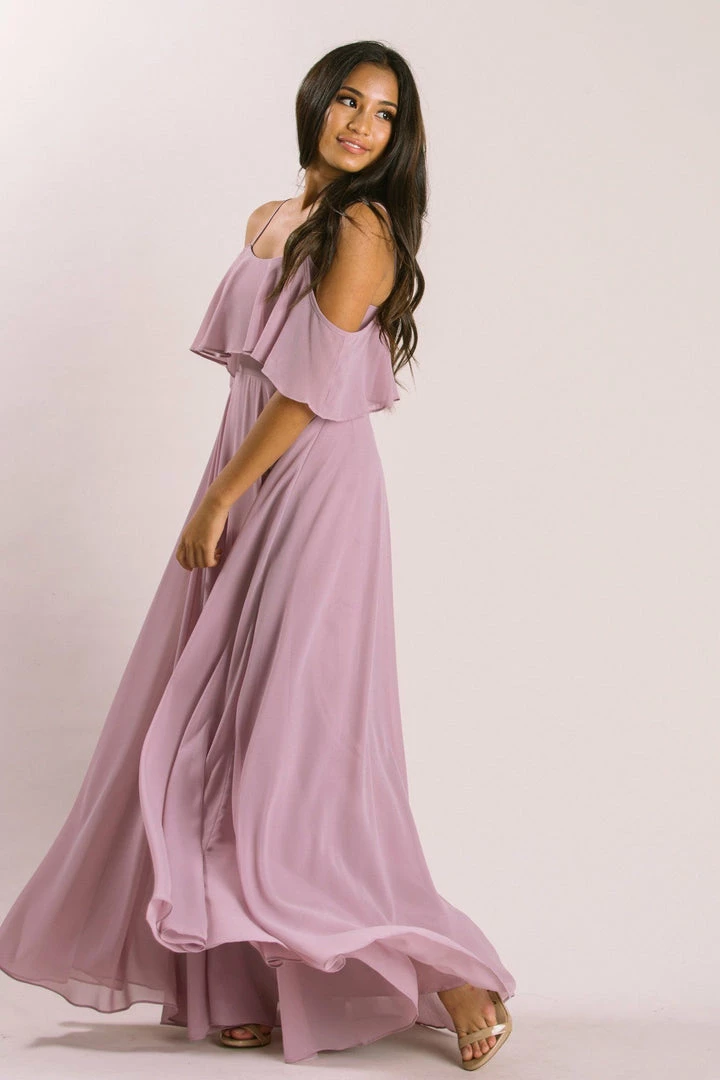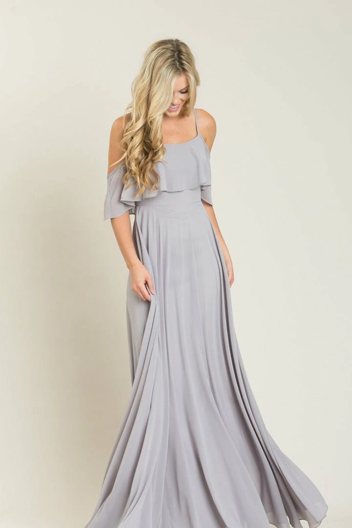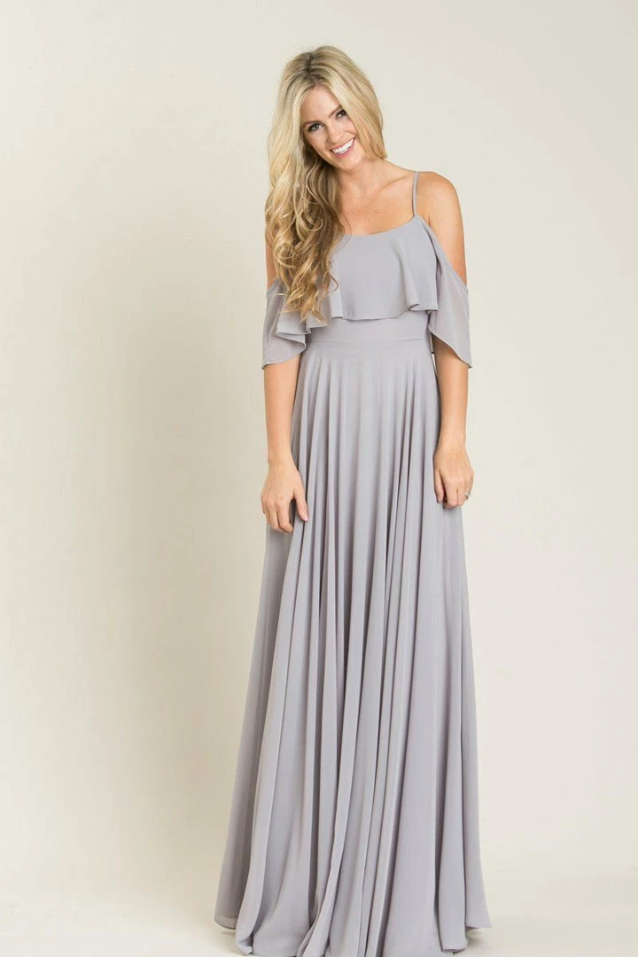 From the flowy layers of this gorgeous maxi dress, to the oversized off the shoulder ruffle detail, we can’t get enough of this stunning piece! This flattering fit and flare makes this perfect for special occasions, just add one of our crystal statement necklaces and your favorite strappy heels and you’ve got an emsemble that’s sure to dazzle wherever you go! The feminine details and gorgeous grey color makes this perfect for year-round wear!