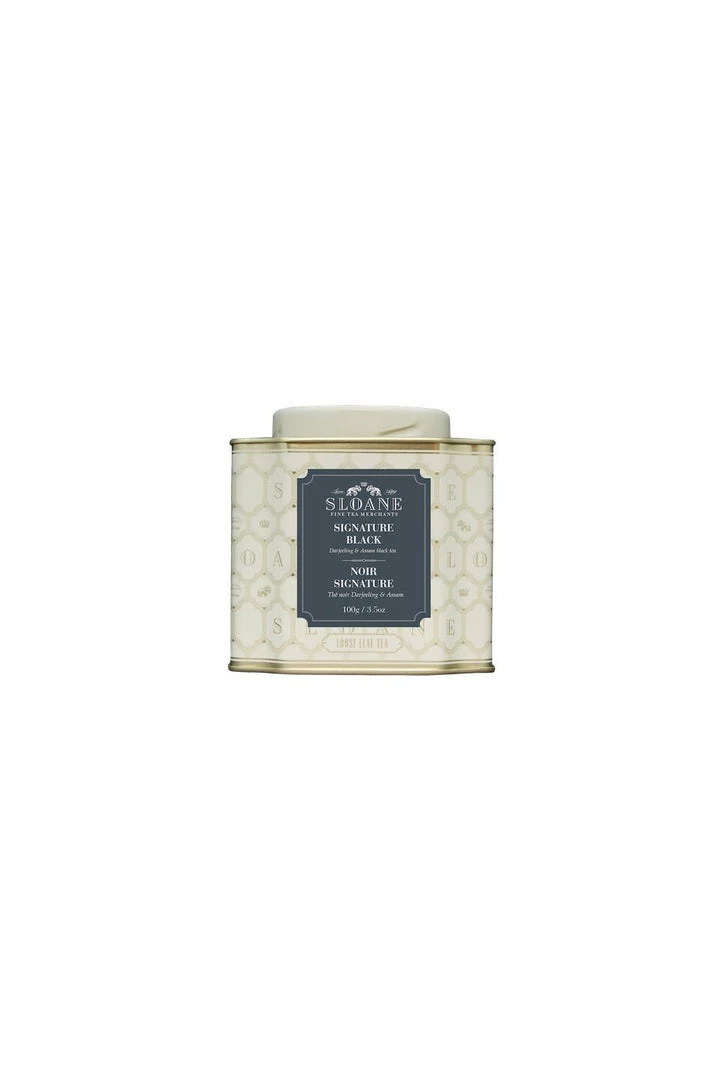 Each tin is filled with 100g of whole leaf loose leaf tea from Sloane Fine Tea, sealed tight with an airtight plug and lid.