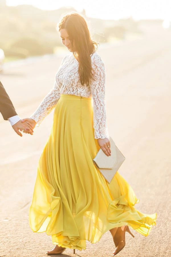 With flowy layers and a flattering silhouette, the Amelia Full Maxi Skirt is all you could have asked for and more. Dress up this gorgeous bold yellow maxi skirt with heels and one of our beautiful lace tops for the perfect engagement shoot outfit, or dress it down with a casual cami for going to brunch with the girls.