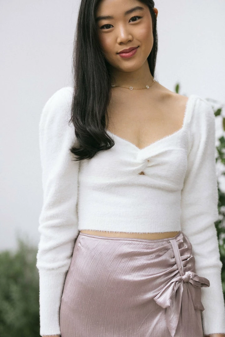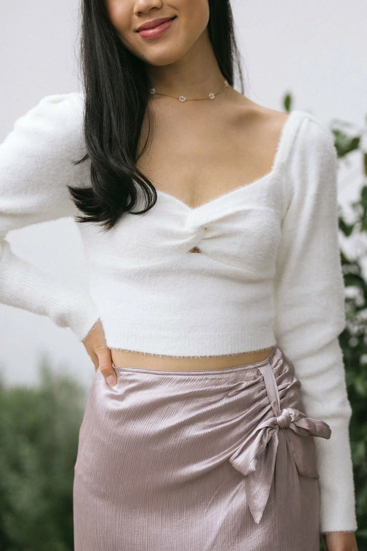 - Pretty front twist detail creates sweetheart neckline