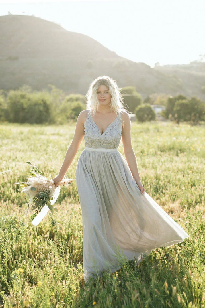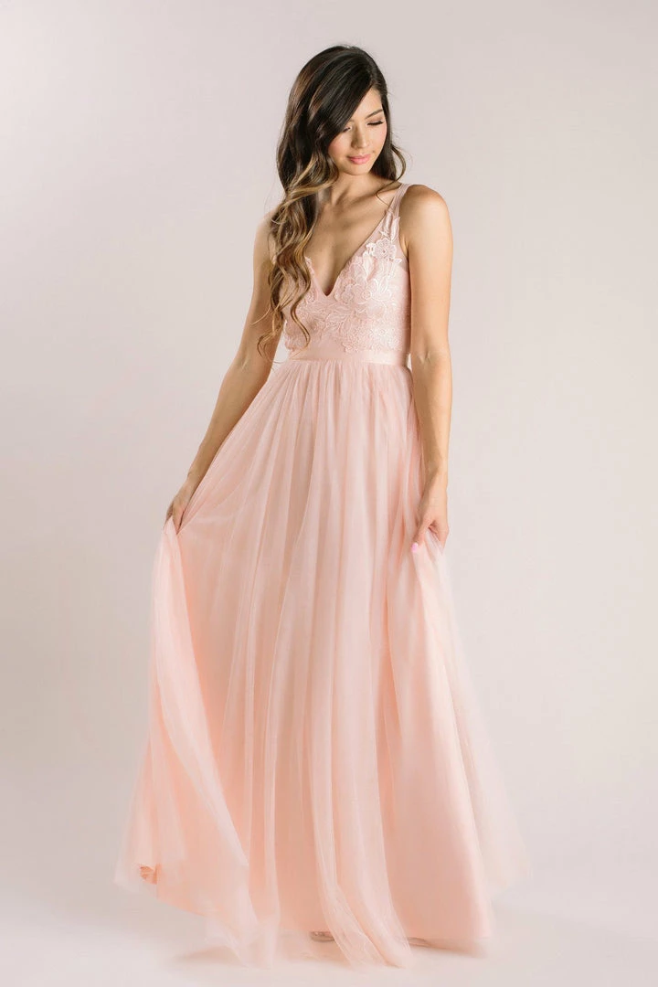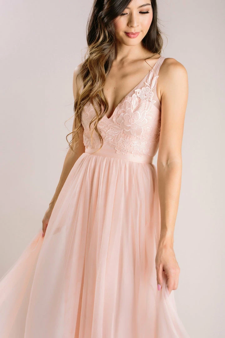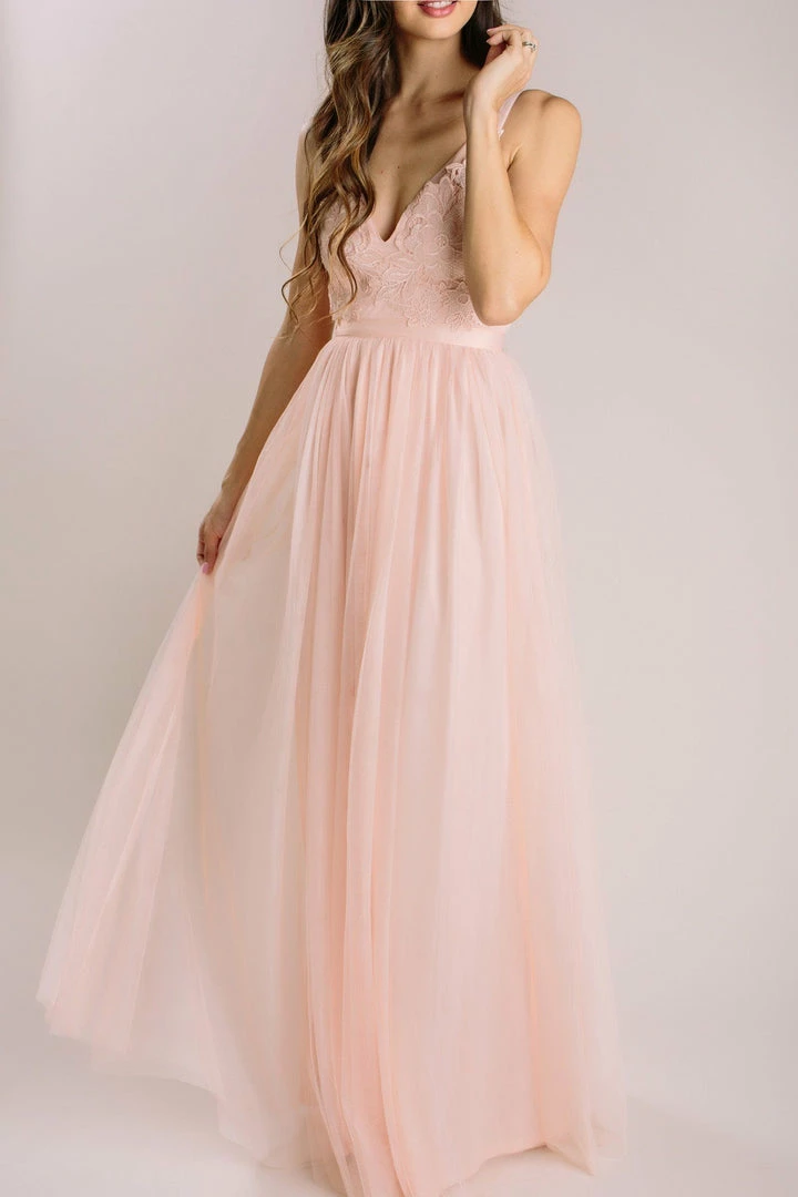 This is the prettiest tulle maxi dress we’ve ever seen! From the classic blush pink color to the pretty lace embroidered bodice, this gown will make you feel like a princess wherever you are! The flattering fit and flare silhouette and v-neckline just adds to the feminine feel of this piece. Wear this to your next outdoor wedding paired with your favorite statement necklace and strappy heels!