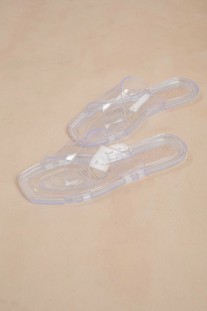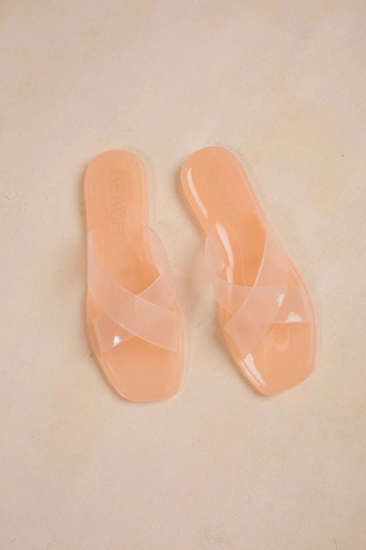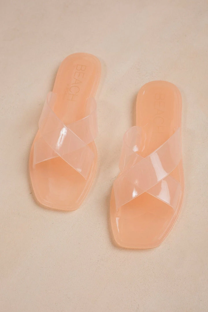 - Vegan, lightweight jelly slide sandal with a cross band upper
