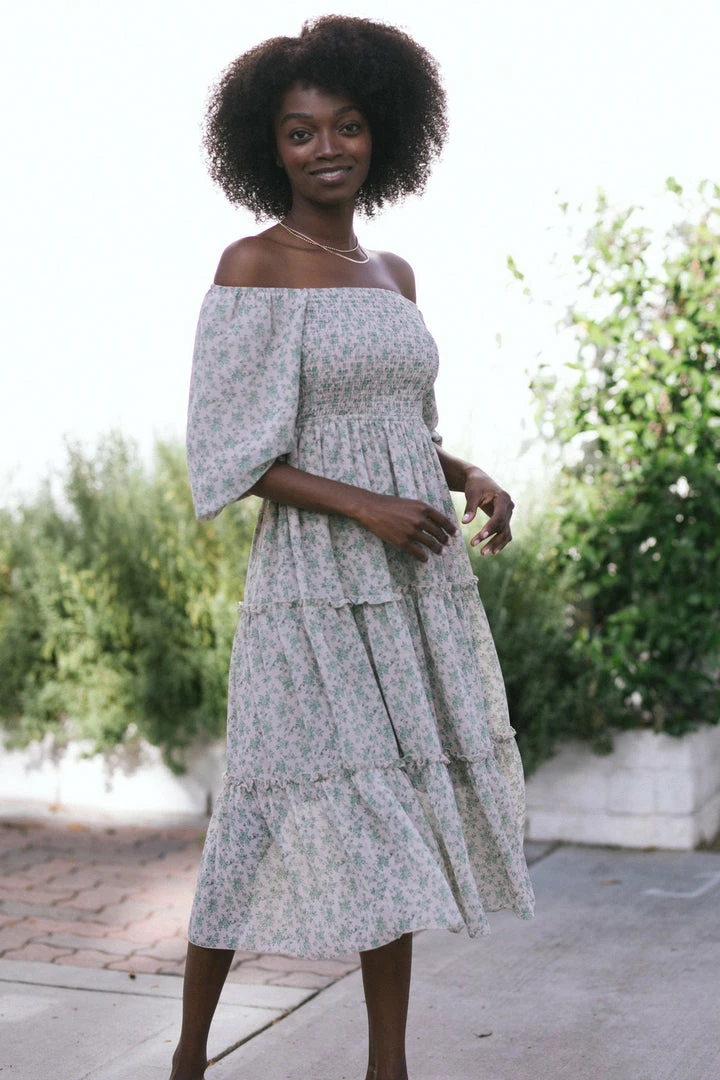 - Alexis is 5’8″ and is wearing size X-Small (Bud Floral)