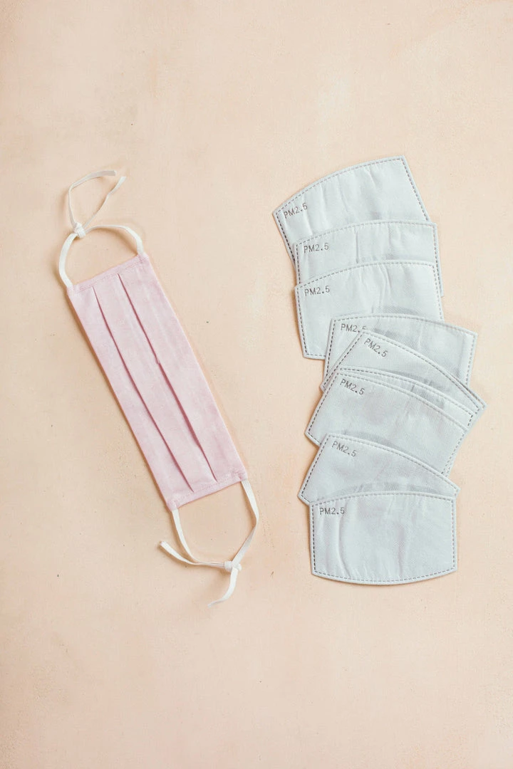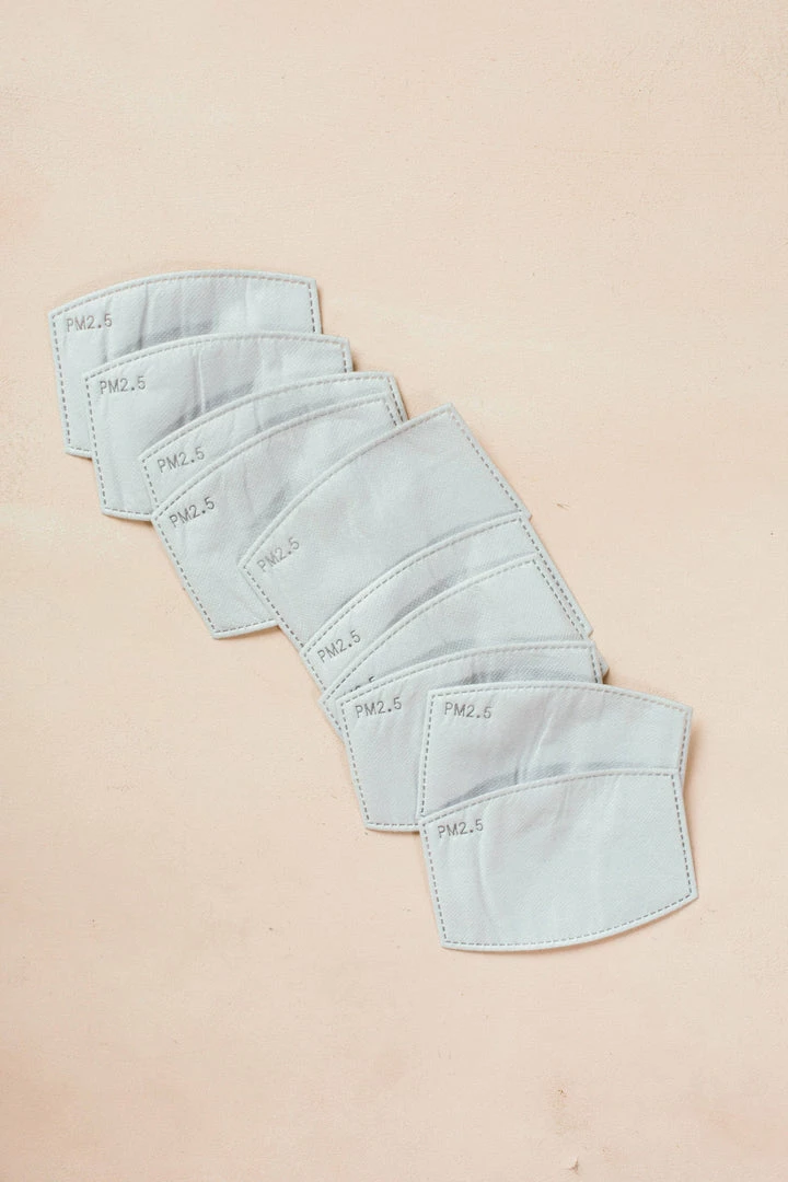 PM2.5 filters are recommended as inserts in our masks to help prevent small particulates from infecting you and/or others. PM2.5 filters with activated carbon layer help filter out smoke, odors, bacteria and virus molecules as small as 2.5 microns. Each pack contains 10 filters.