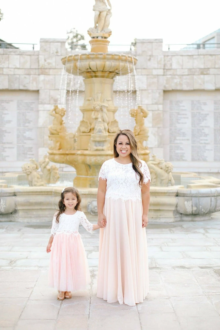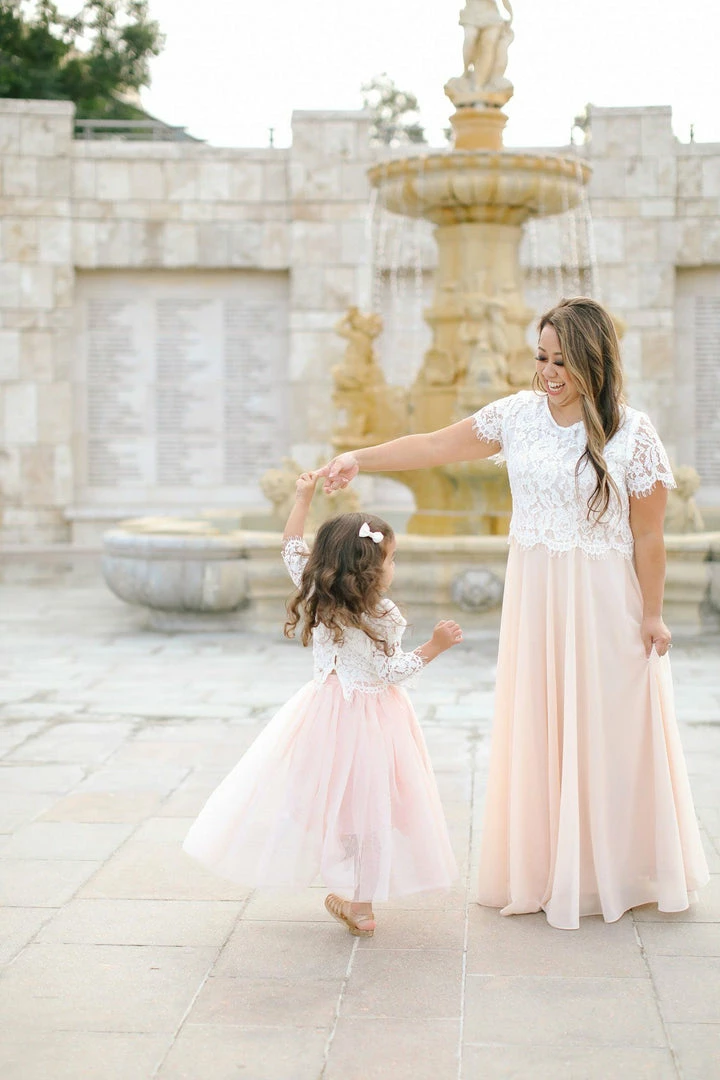 Also match mom as it is complimentary to our Amelia Full Maxi Skirt in Pink or our Audrey Tulle Gown.
