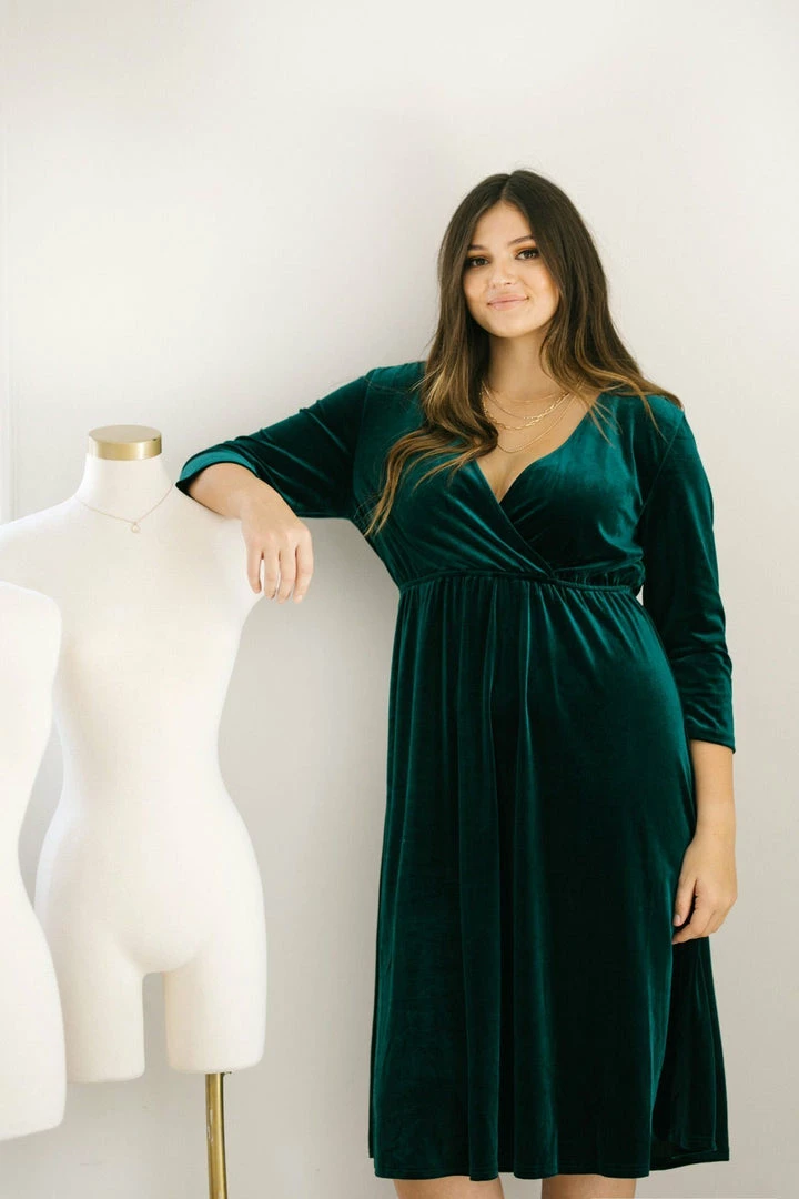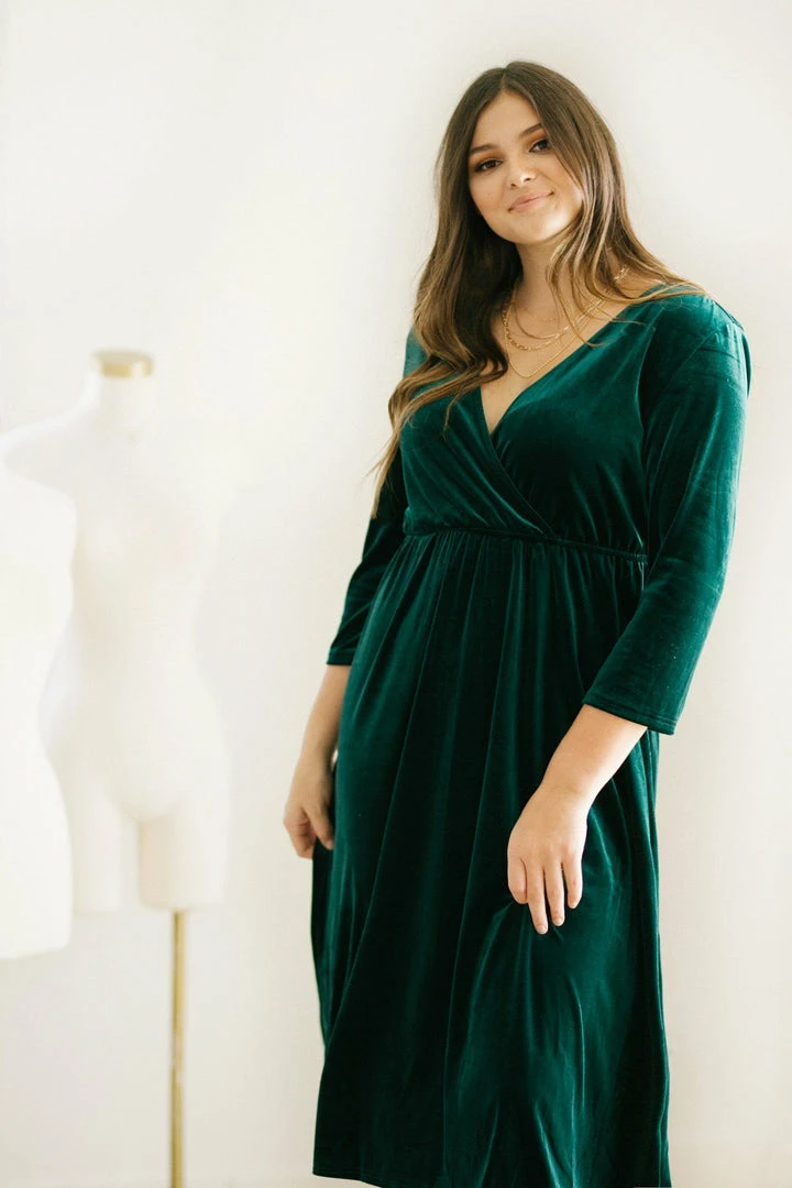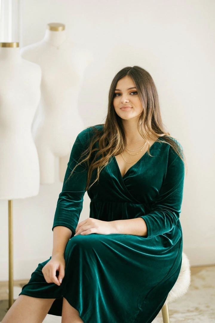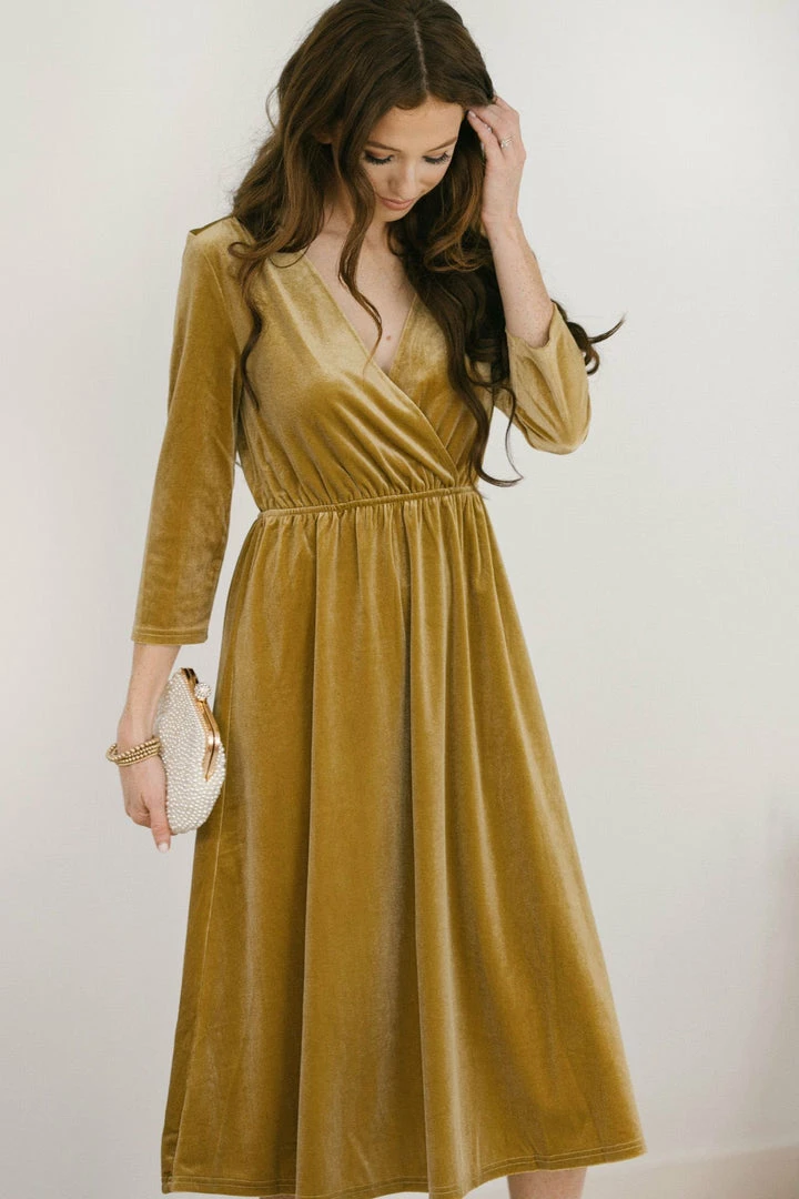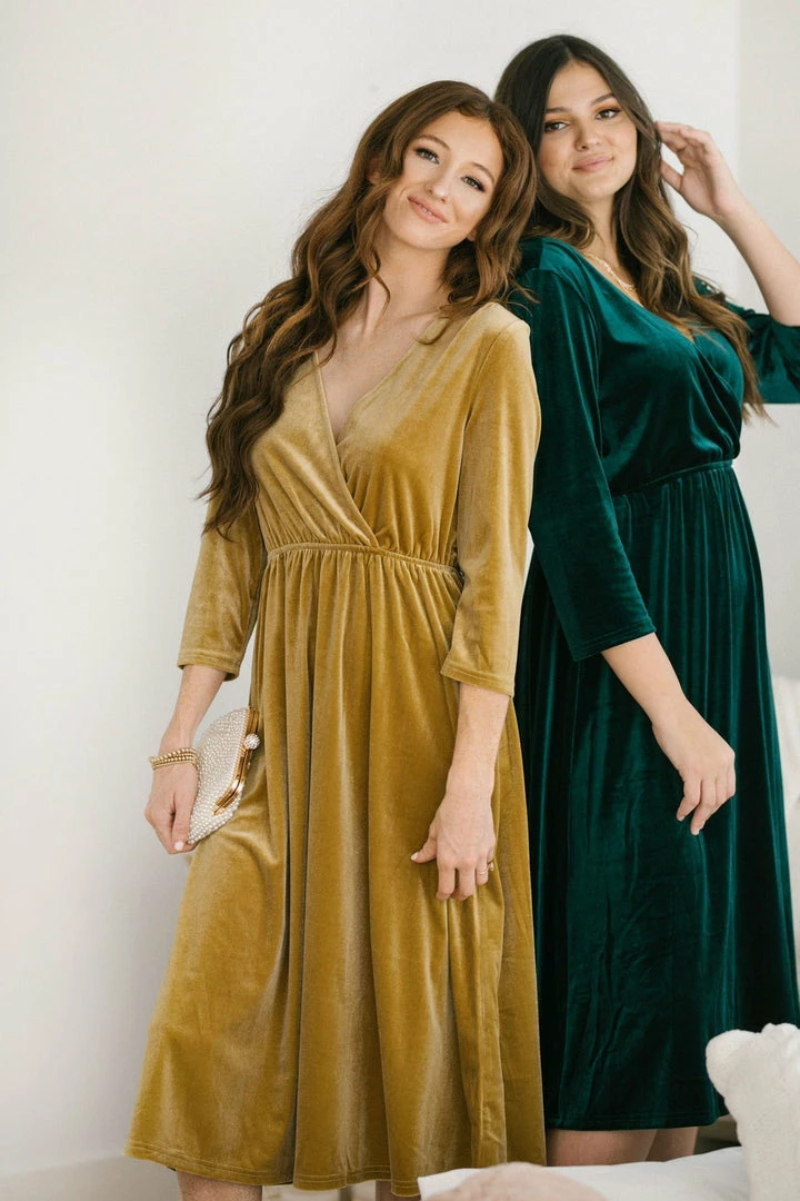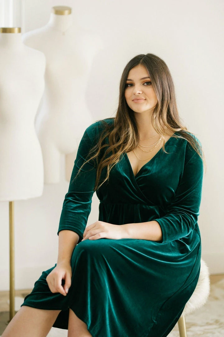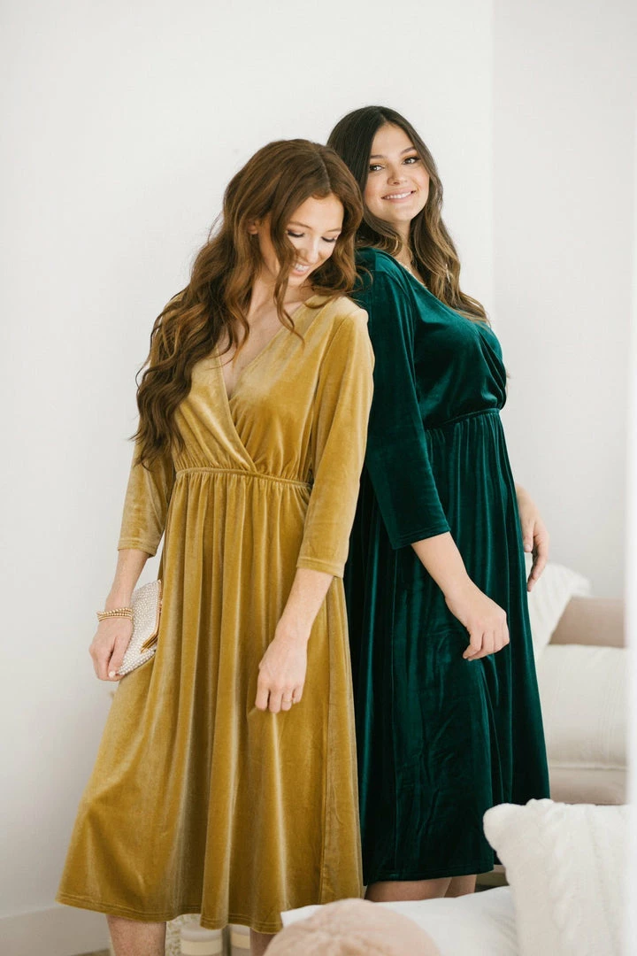 Add a touch of luxe to your dress collection with the Lucy Velvet Midi Dress! With an elastic waist and a flattering v neckline, this piece is the perfect balance between comfy and glam. Add a pair of crystal earrings and a clutch to create an elegant ensemble!