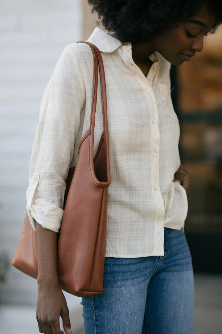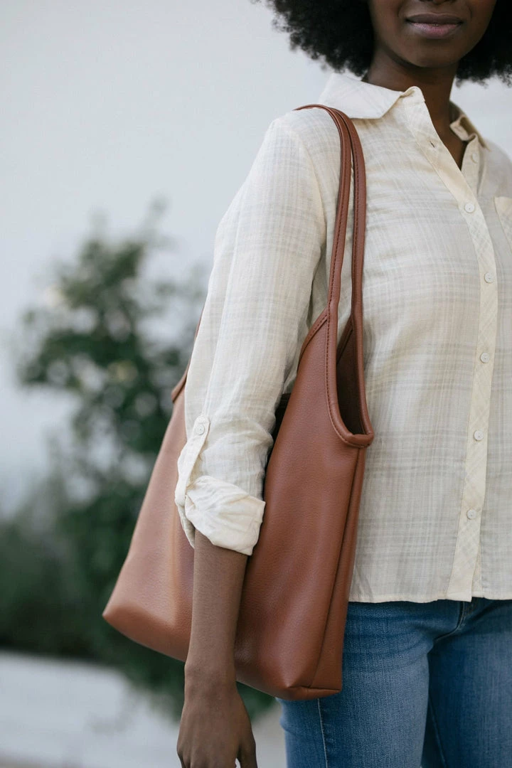 Yes we have found the perfect slouchy tote! It’s soft and comes with a matching pouch. It’s a single compartment with a snap closure!