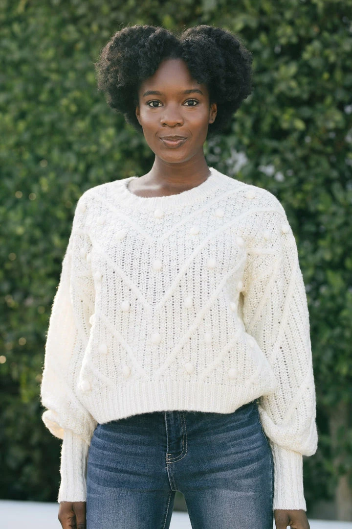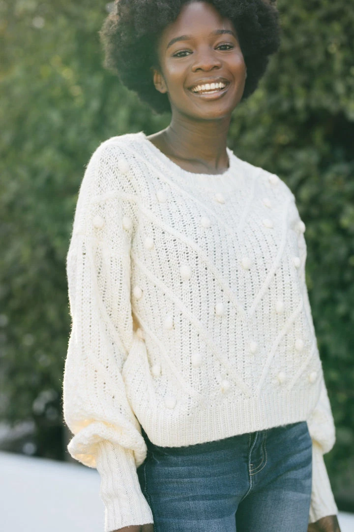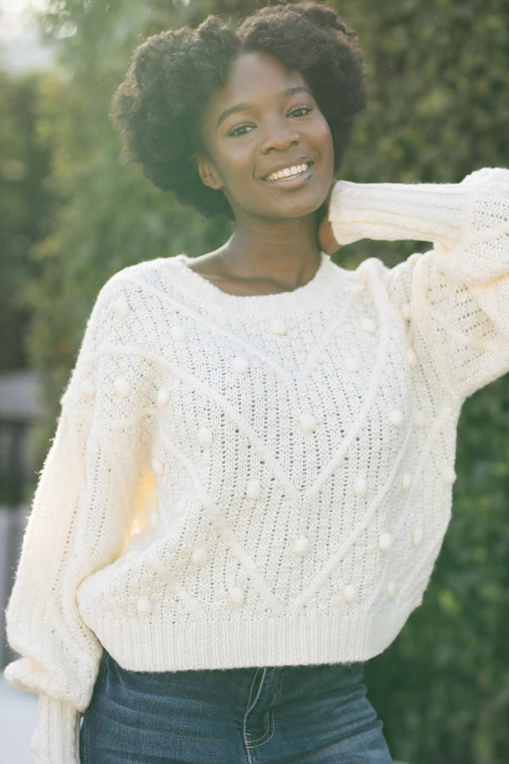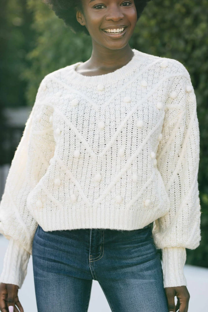 Everyone needs a fun pom pom sweater in their closet! We love the chevron pattern, pom pom details, and trendy full sleeves. Get cozy in this piece and pair it with your favorite jeans for a cute, laidback look.