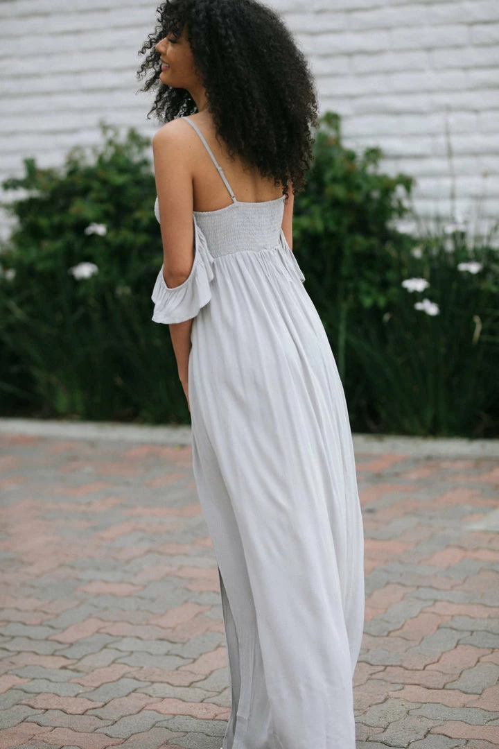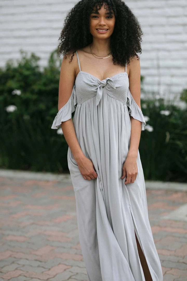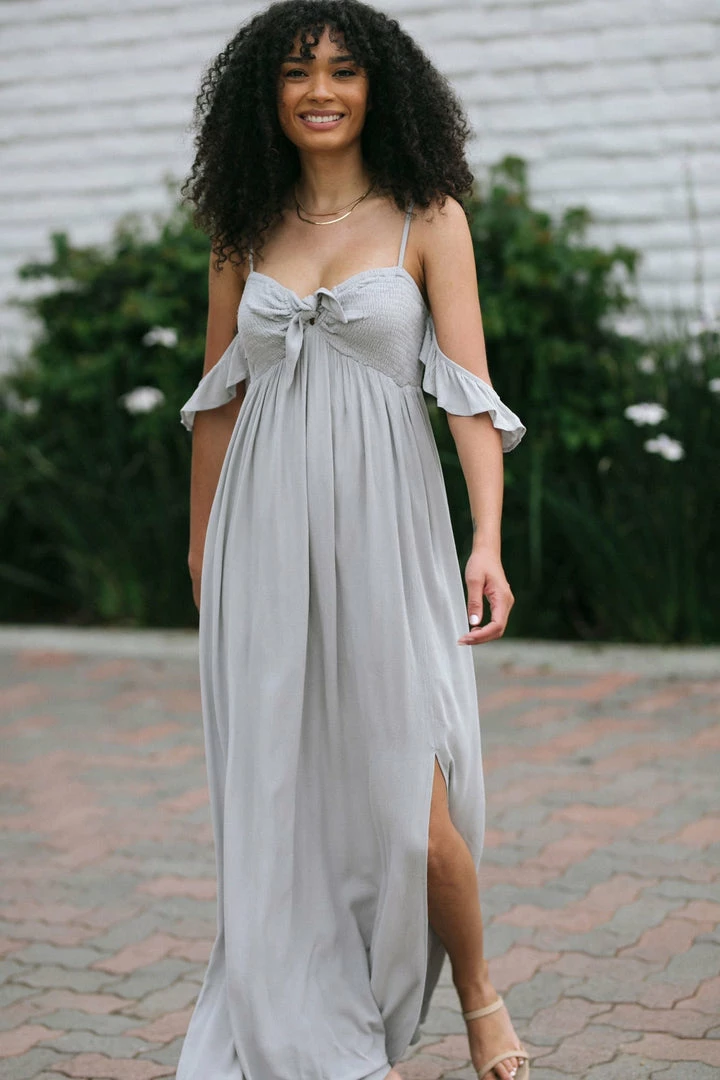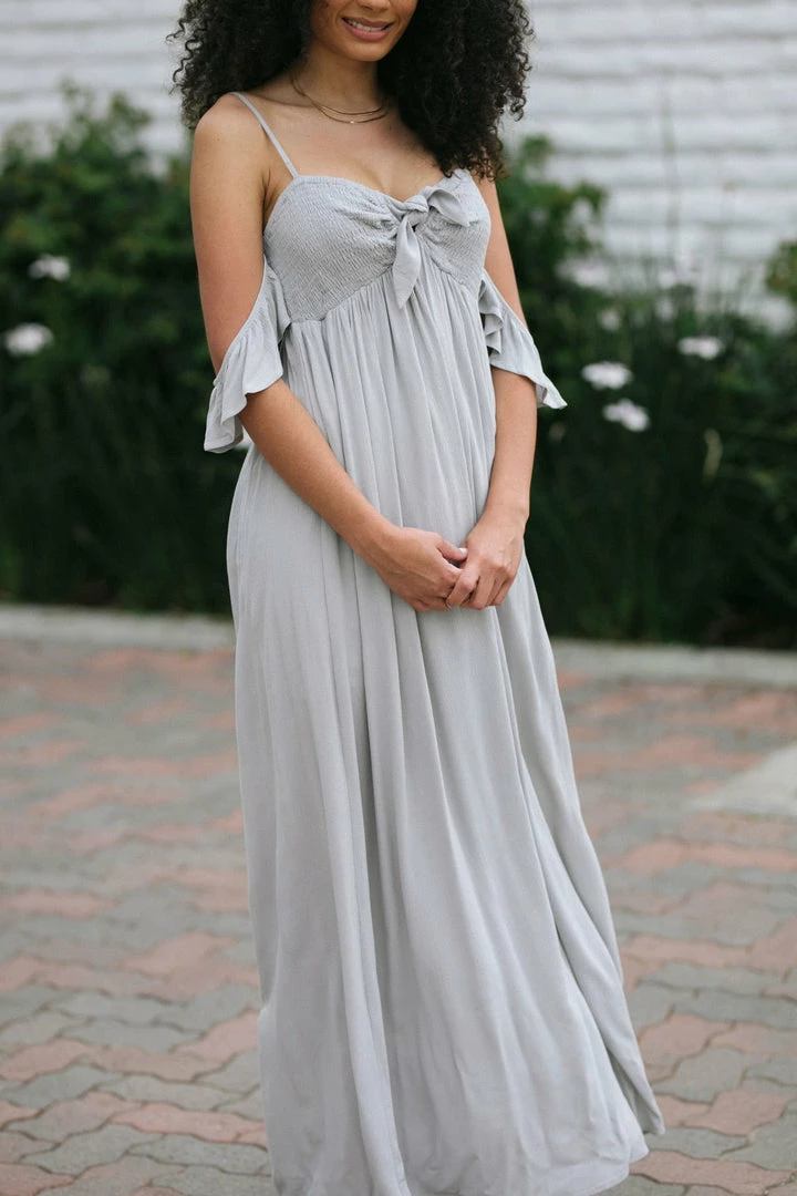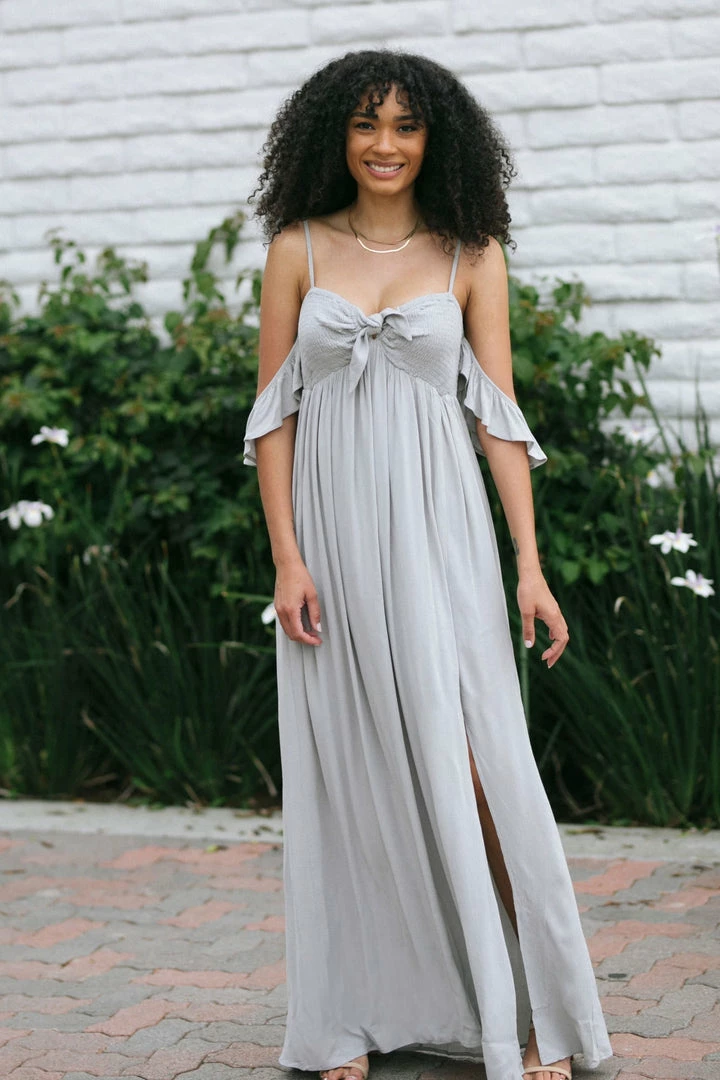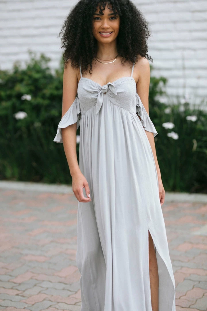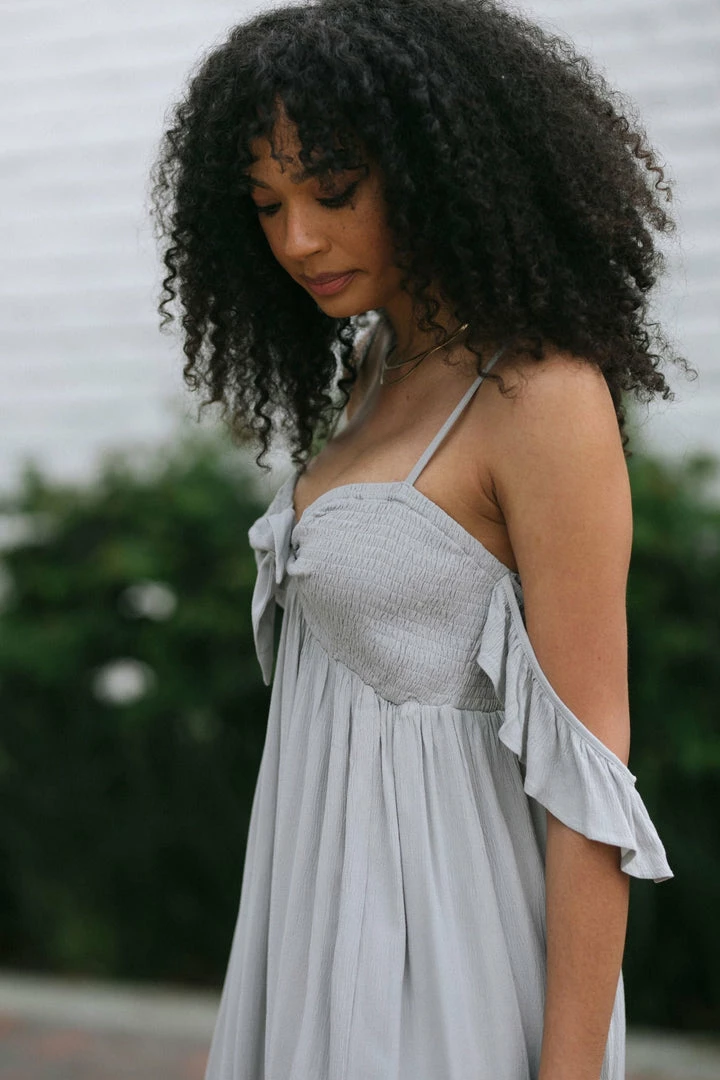 - Ruffled off shoulder details
